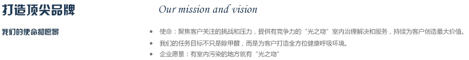 2012年公司斥巨資從德國專業(yè)空氣研發(fā)實驗室引進銳鈦型納米二氧化鈦研發(fā)成果,同時與國內(nèi)知名高校進行合作,成立光之吻”品牌,致力于為人類創(chuàng)作純凈,健康的呼吸環(huán)境,成為你身邊的健康衛(wèi)士,實現(xiàn)365天健康呼吸的夢想,目前是同類產(chǎn)品中最有競爭力的品牌之一。